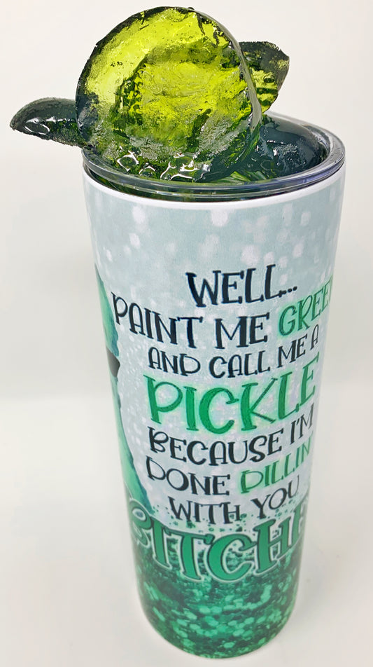 "Well Paint Me a Pickle and Call Me Green" 20oz. Tumbler with 3D Pickle Lid