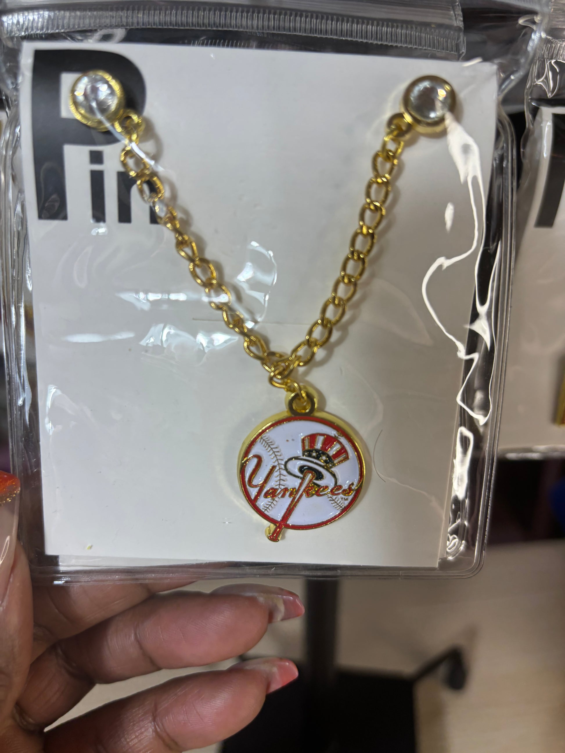 Upgrade your hat game with these stunning gold chain pins! Each piece features a bold charm accent and sparkling rhinestone details, adding the perfect mix of glam and edge. Designed to clip easily onto trucker hats, fedoras, or beanies β these pins make every look pop with personality and style.
